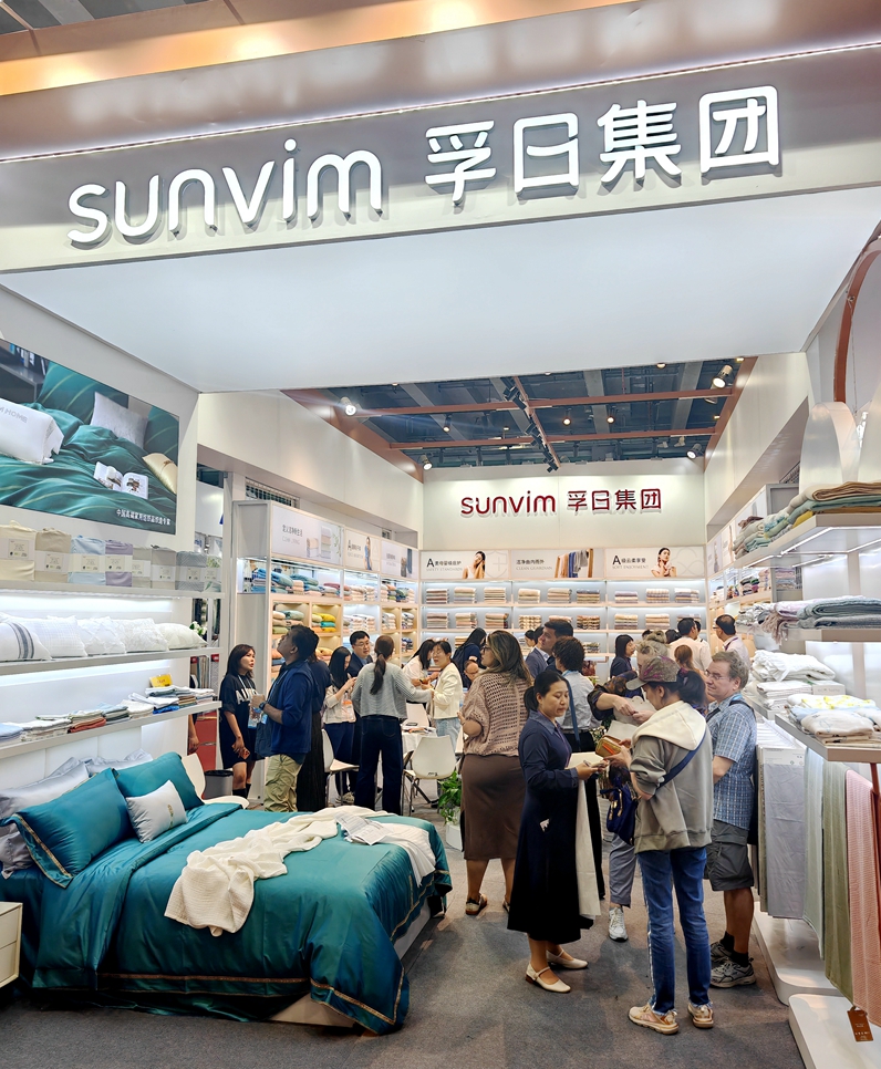 作為全國知名家紡企業,孚日集團緊扣展會主題,在展會上重點呈現了綠色環保與可持續發展系列產品。不僅在新型環保材料的應用上推出眾多新品,更同步展示了多項新技術、新工藝與創新設計,全方位彰顯企業的研發實力與前瞻視野。據統計,此次展出的產品中,新品占比高達80%以上,充分體現了孚日集團在產業升級與產品創新方面的積極成果。